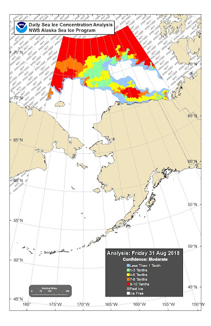 These ice limits obviously go way south as we approach winter, well down into the Bering Strait and remain fast until late spring... which makes one wonder why there is so much speculation about the importance of a land bridge (Beringa) when it comes to populating North America from Eurasia—much of the year you can just bundle up and walk across. Unless I read the data wrong, there was more ice 20,000 years ago at the proposed time of this migration than now. It seems the more compelling question is why don't we build the bridge now!