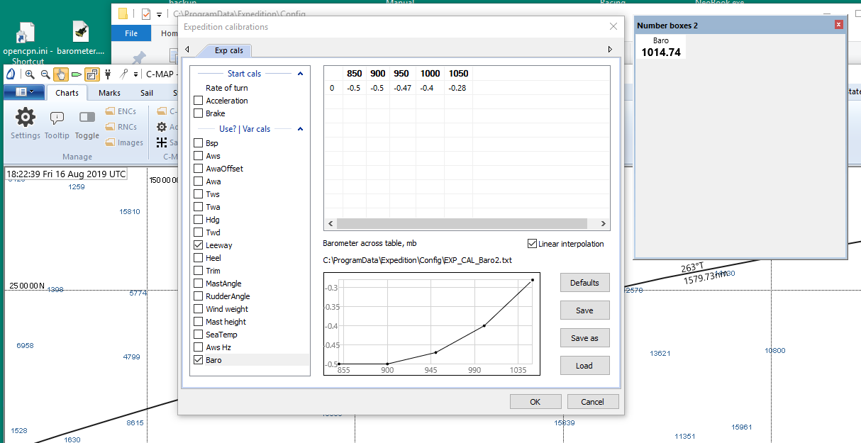 The same is true with the Dracal barometer. We can fairly expect that it can be off by a few tenths, which we can learn from watching it, and then we can make the needed corrections in the programs we use to display it. In expedition, this is done very easily with a digital offset accessed from the main menu/calibrations/baro. In OpenCPN, the correction process takes a few steps. We use the plugin called NMEA Converter, where we modify the NMEA sentence itself, as shown in one of the video links below.