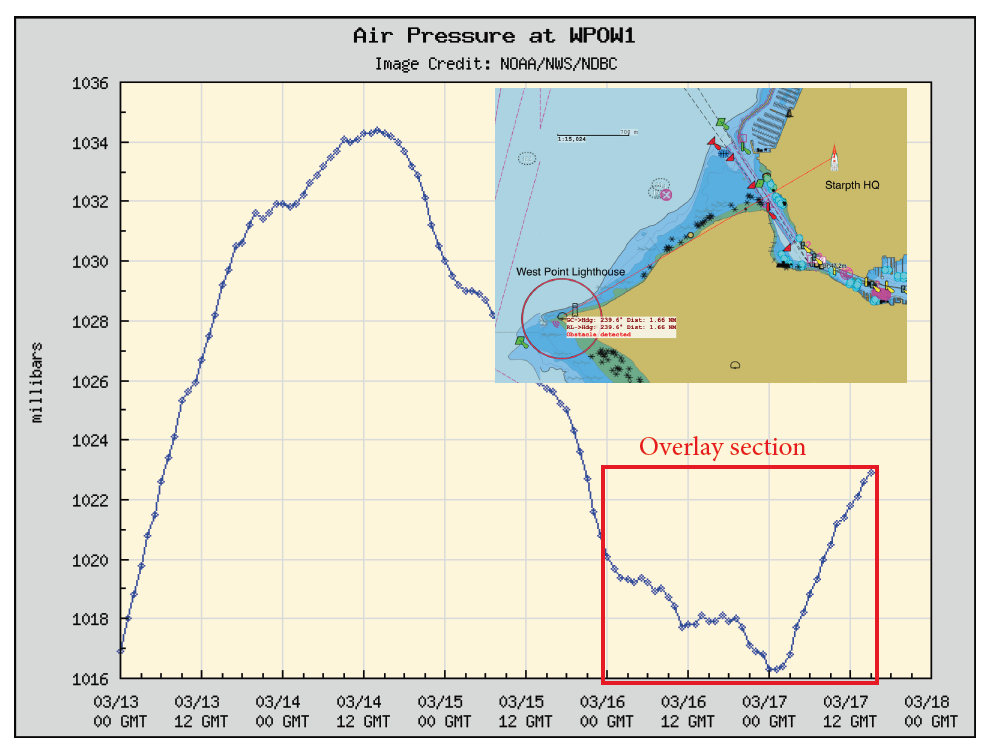 In the tropics, where the standard deviation of the seasonal pressure is just a couple millibars (mb), we can know from accurate pressure alone whether or not a tropical storm is approaching—and we can know this before we see notable changes in the clouds or wind. Needless to say, we navigate in such waters primarily based on official forecasts and tropical cyclone advisories, but an accurate barometer gives us early notification that forecasted storm motions are on time, early, or late. On the other hand, any loss of wireless communications makes the barometer even more important.